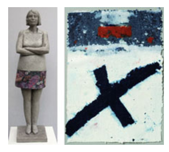 Birgit Feil (1965) hat von 1987 – 1995 an der freien Kunstschule Stuttgart und an der HdK in Berlin studiert. Heute lebt und arbeitet die Bildhauerin in Warmbronn und Stuttgart. In jüngster Zeit finden ihre höchst eigenständigen, meist lebensgroßen, dreidimensionalen Menschenbilder zunehmend Beachtung. Das Spannungsfeld zwischen dem ersten Eindruck einer dem realen Erscheinungsbild entsprechenden Abbildung Einerseits sprechen die monochromen Flächen, Felder oder Bänder in intensiven Farben allein durch ihre Farbwirkung, durch den Nuancenreichtum der Farbbehandlung unmittelbar die Sinne an. Andererseits wollen die an Kalligrafie erinnernden Zeichenkürzel, die als grafisches Element in den malerischen Prozess eingebunden und über die Flächen gelegt werden, gelesen und mit den Augen behutsam nachvollzogen werden.