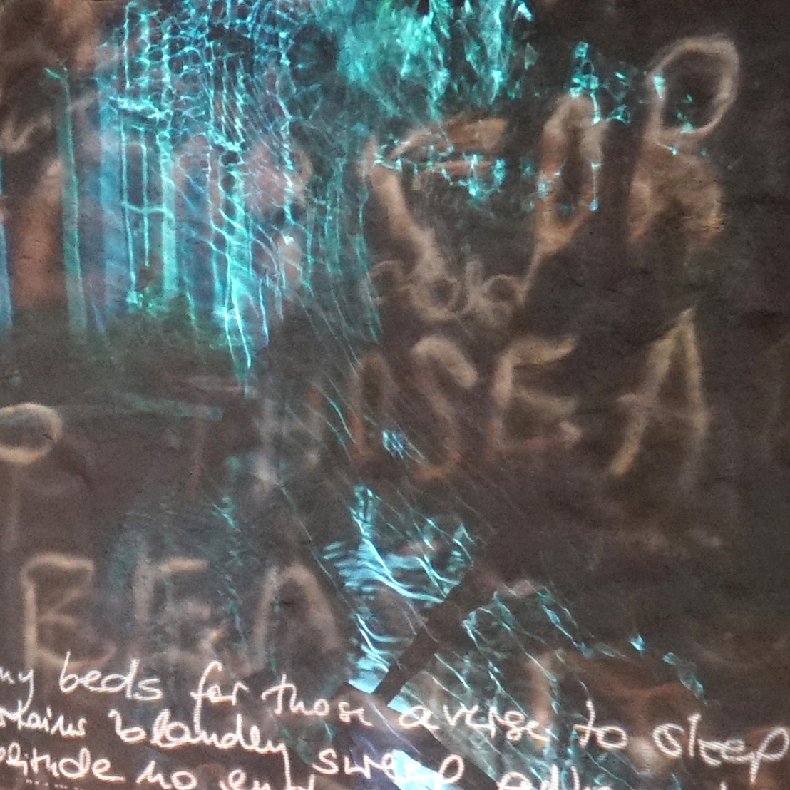 Die Düsterkeit ergründet Nikola Dicke in ihrem künstlerischen Werk auf vielerlei Weise: Sie zeichnet mit spitzen Werkzeugen auf mit schwarzem Ruß bedecktem Glas. Diese Zeichnungen hinterleuchtet sie oder projiziert sie in Räume und auf Fassaden.